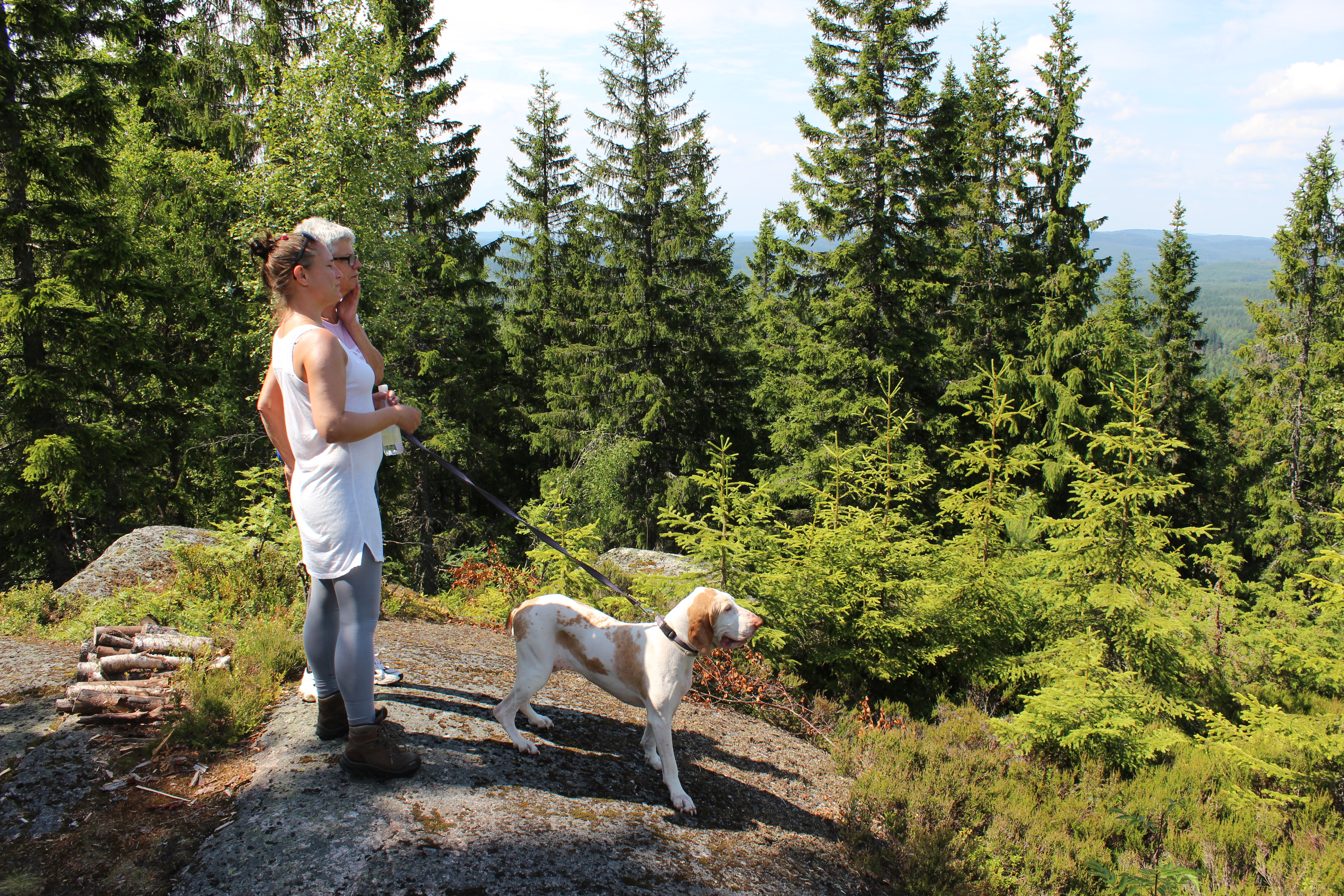 Utsikten njöts av lokala och internationella deltagare: italiensk jakthund och sin belgiska ägare i samtal med Monika Stake Jonsson.