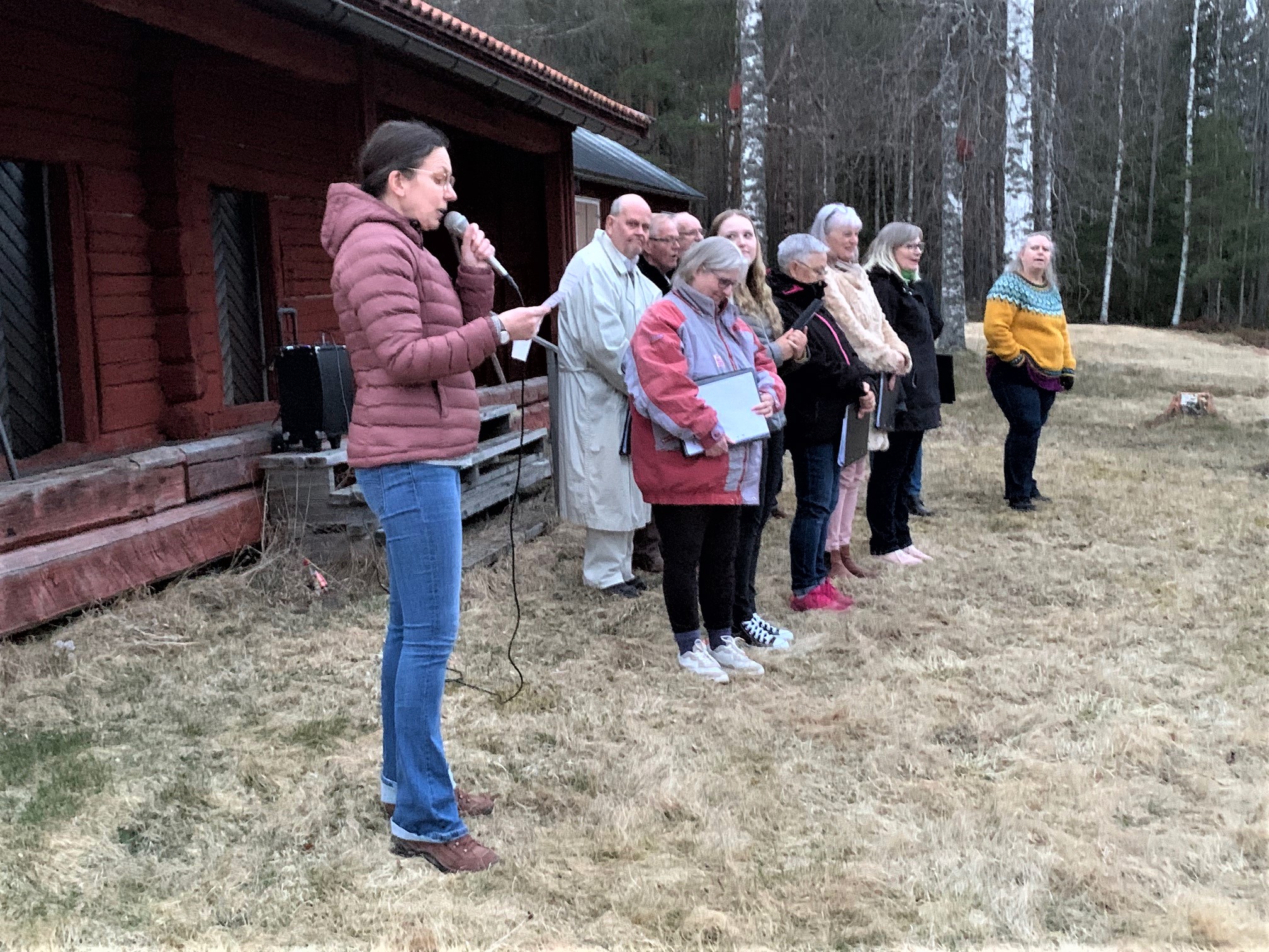 Årsmötets deltagare var lika nöjda med årsmötet som med den efterföljande pajbuffén och den goda kakan till kaffet. I sitt vårtal tog Rebekka Edlund bl a upp hur snabbt en företeelse blir en tradition, men vårfirande har långa rötter i historien. Lesjöforskören ramade in vårtalet med fina vårsånger. Det ståtliga majbålet brann med klar låga som en masugn – mycket passande i en bergsmansby.